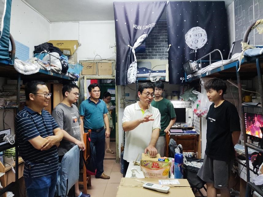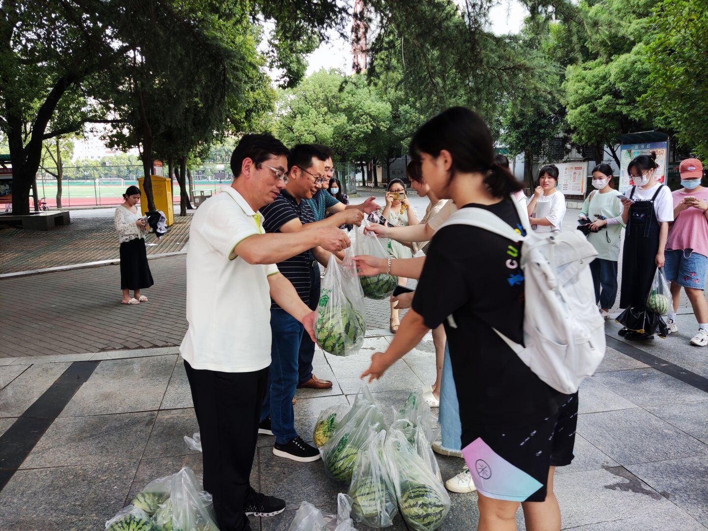 7月3日,我院党总支书记吴浪平、院长陈洪友一行看望暑期留校考研学生,并送去防暑降温慰问品。副书记刘清华、学工办主任何晓程及辅导员陪同慰问。