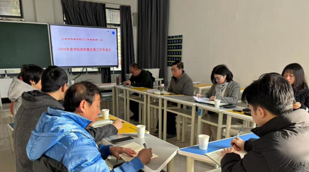 2025年2月10日,我院在四合院119召开了新年工作部署会议。学院班子成员、党总支委员、各系主任、各科室负责人参加了会议。会议围绕“一个中心(高质量发展)、两件大事(高质量通过本科教育教学审核评估、高标准通过硕士点建设验收)”,各口结合自己分管工作内容对2025年学院高质量发展做了交流发言,为学院高质量发展理思路,谋出路。