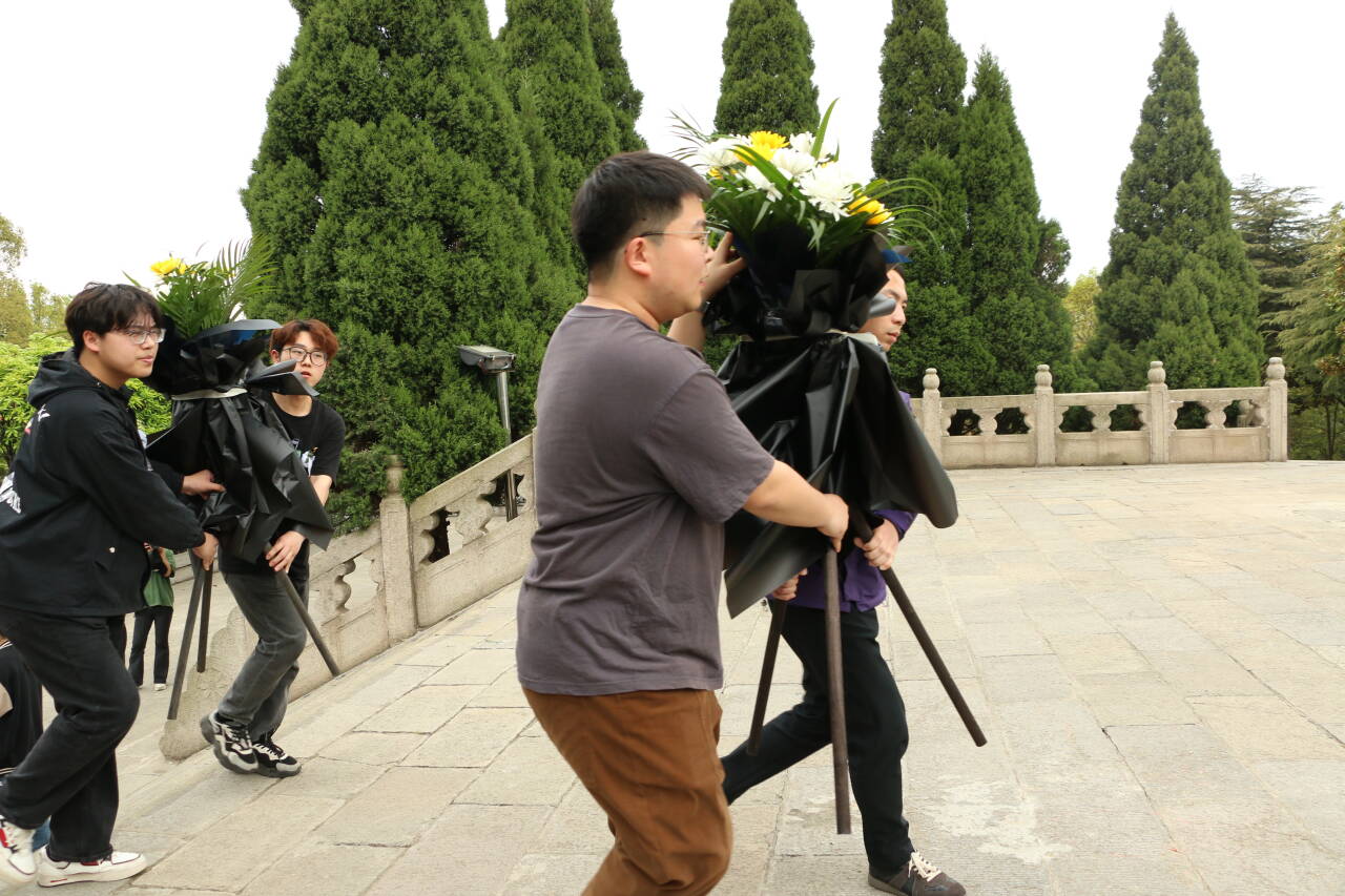 在革命烈士纪念碑前,学生党员代表袁潇骏作主题讲话。他首先向烈士们致以崇高的敬意,并表示:“吾辈青年学子应传承发扬烈士们的崇高精神,勇于担当,敢于创新,为实现中华民族伟大复兴的中国梦而奋斗。”