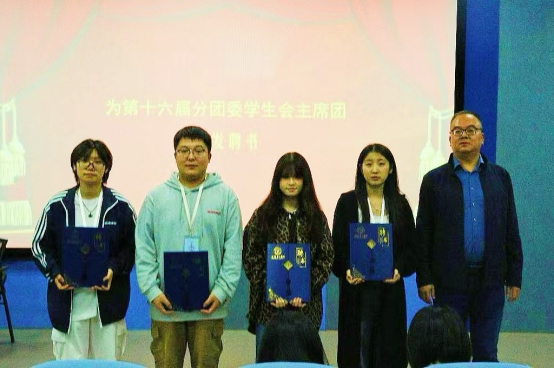 首先,第十六届分团委学生会主席兼分团委副书记袁潇骏就去年工作进行会报与总结,从工作成效、团队协作以及对未来工作的设想进行了阐释,强调了作为学生干部应有的对学生工作的责任意识与奉献精神。并由李书记、各辅导员老师们为第十六届分团委学生会主席团以及学生会骨干成员颁发聘书。