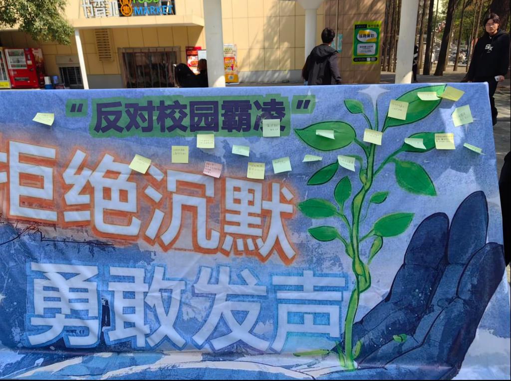 在充满阳光的三月,为营造安全有爱的校园环境,提高学生对校园霸凌的认识和自我保护意识,我院心理协调部于3月22日下午在书香苑蘑菇亭,精心策划并开展了以“拒绝沉默,勇敢发声”为主题的反校园霸凌主题活动。