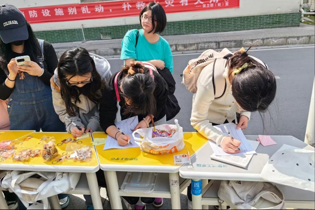 活动当天下午,阳光明媚,学生会的成员们早早布置好活动现场,准备好便利签、糖果和精美钥匙扣后便期待着大家的来临。活动开始后,参与者们在工作人员的引导下有序登记。随后,大家便选取喜欢的便利贴并在上面写下铿锵有力的反校园霸凌宣言,将宣言贴在反校园霸凌海报展览板上后,就带走一颗甜蜜的糖果。