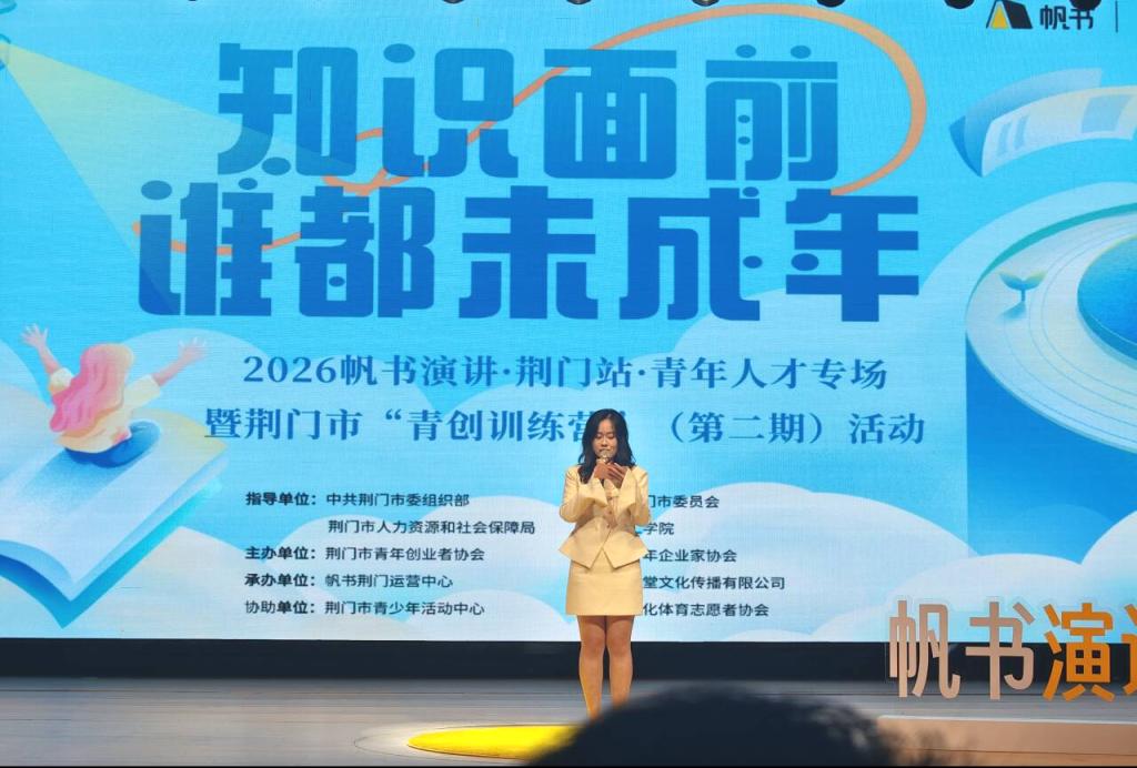 4月27日下午,2026帆书·演讲(荆门站)青年人才专场暨荆门市“青创训练营”(第二期)在荆门市青少年活动中心圆满举办。太阳集团tyc33455组织30名汉语言文学专业学生,与全市创业青年、帆书会员等共同参与此次活动,沉浸式汲取知识养分、提升综合素养。