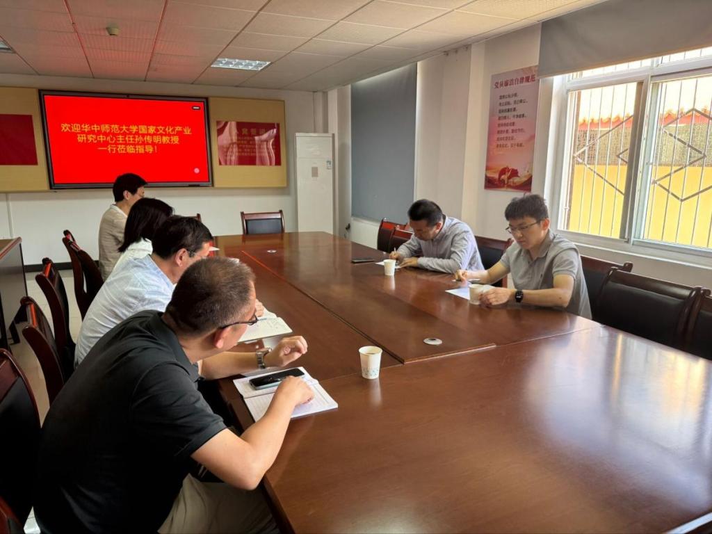 2025年5月12日上午,华中师范大学国家文化产业研究中心主任孙传明教授带队来校交流,推动双方在学术研究、文化产业发展研究以及人才培养等方面的合作。