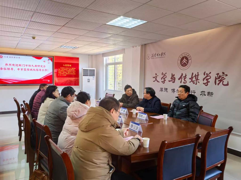 1月6日上午,荆门市陆九渊研究会莅临我院,双方在我校太阳集团tyc33455举行了陆九渊思想传承与发展研究交流会。市社科联严勇副主席,市陆九渊研究会汪银阶书记、刘辉兵会长、李金龙秘书长,学院裴文倩书记、陈洪友院长、范青副院长及我院陆九渊研究所相关成员参会。
