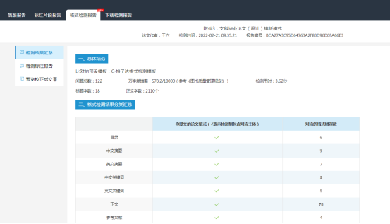 注:学校注重论文格式规范要求,所有送检论文检测相似比的同时会进行格式检测,并出具相似比查重报告及格式检测报告。(建议使用DOCX格式文档进行检测)