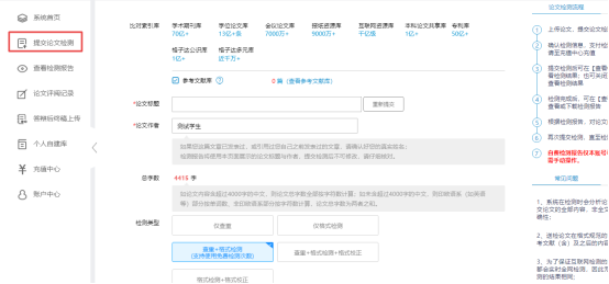 5.因为系统具备应届互抄检测功能,所以请不要替他人上传论文文档检测,否则会导致本人论文与他人论文检测到相似;